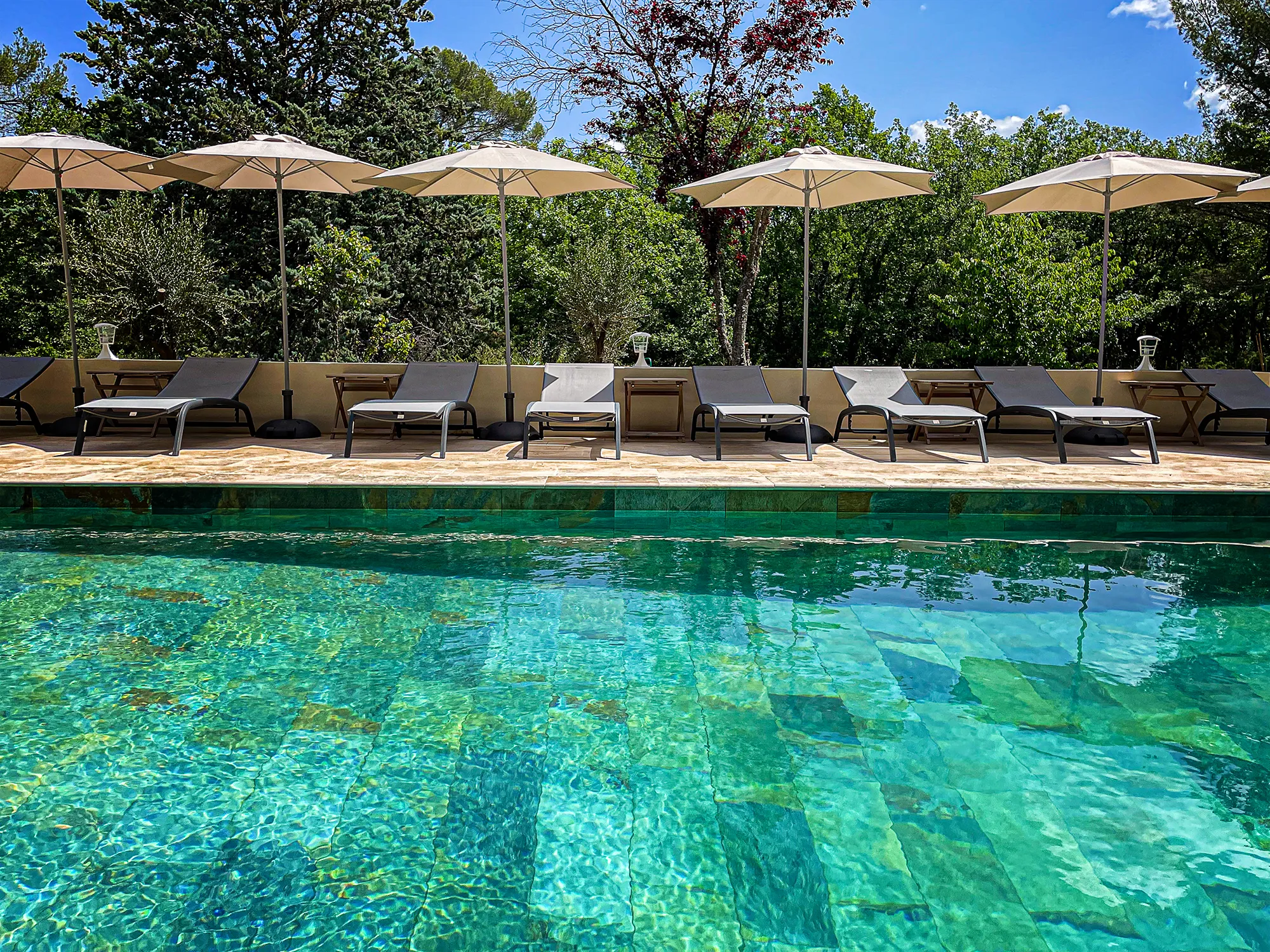 Het wordt begrensd door een groot terras met een enorm solarium. Met maar liefst acht ligstoelen en bijbehorende mobiele parasols voor lange, luie dagen. Er zijn ook beveiligde stopcontacten in de buurt van de ligstoelen. Ideaal om smartphones en tablets op te laden. Zwemuitrusting en waterspelletjes zijn gratis beschikbaar voor onze bezoekers (drijvers, zwembrillen, ballen, enz.).